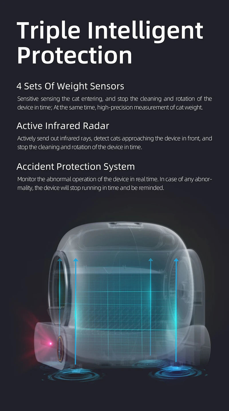 Explore new adventures with the 65-liter automatic litter box! Self-cleaning and fully enclosed, your cat will always be happy and clean. Save time and enjoy an effortless litter box experience. Don't miss the opportunity to have a tidier home and a happier feline!