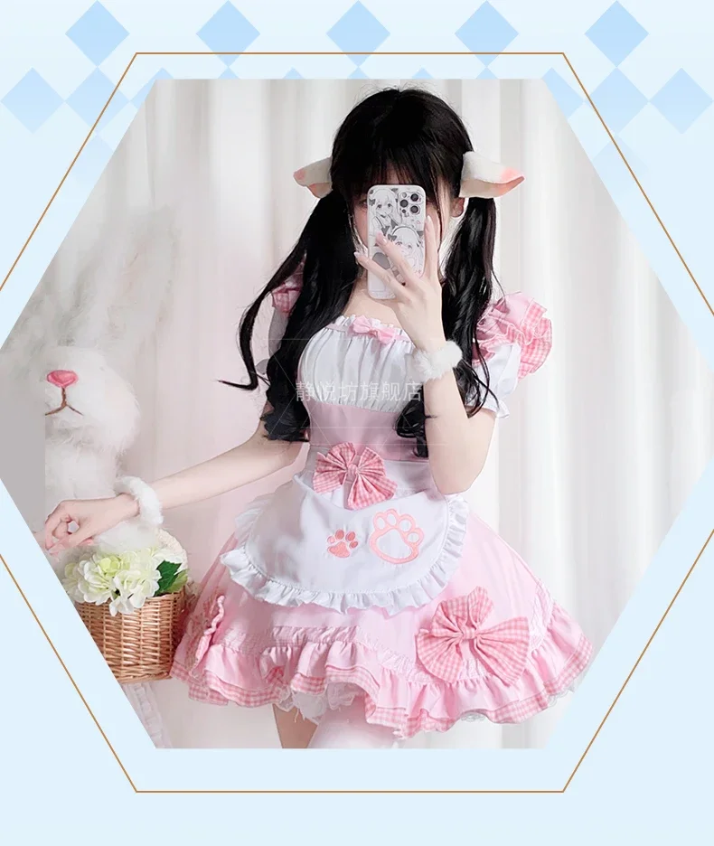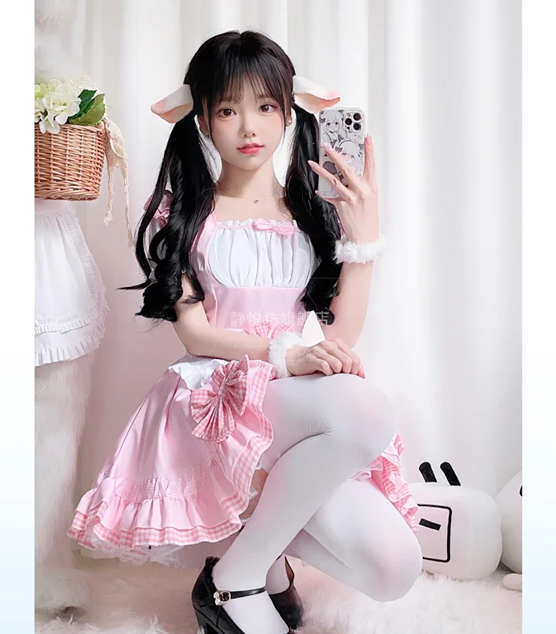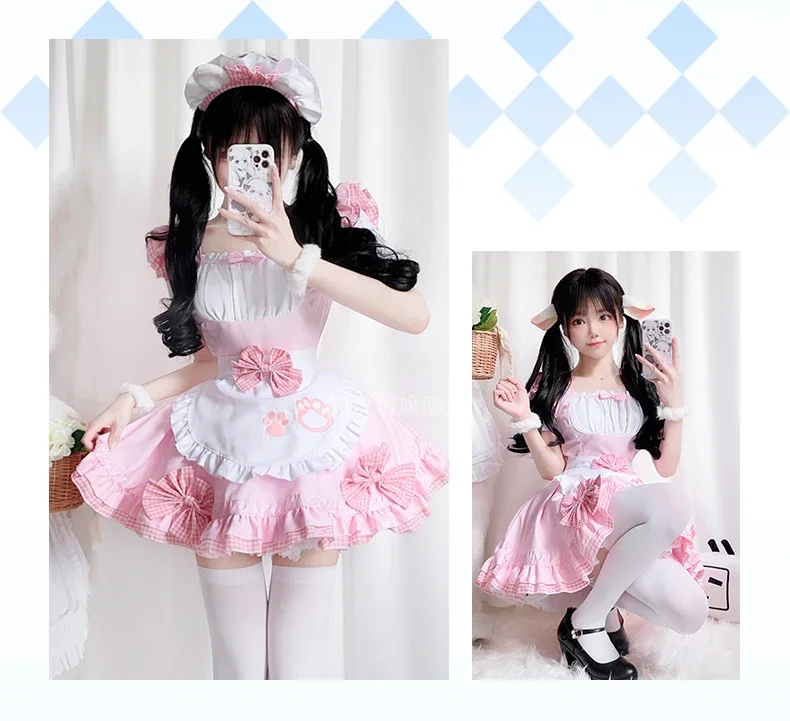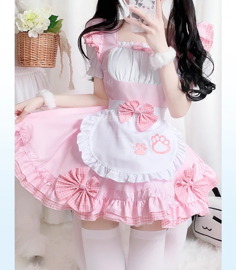 001-Women's Pink Maid Costume, Japanese Anime Cosplay Dress