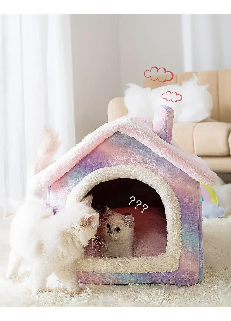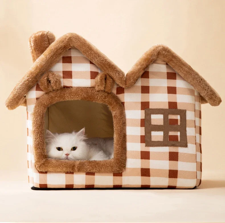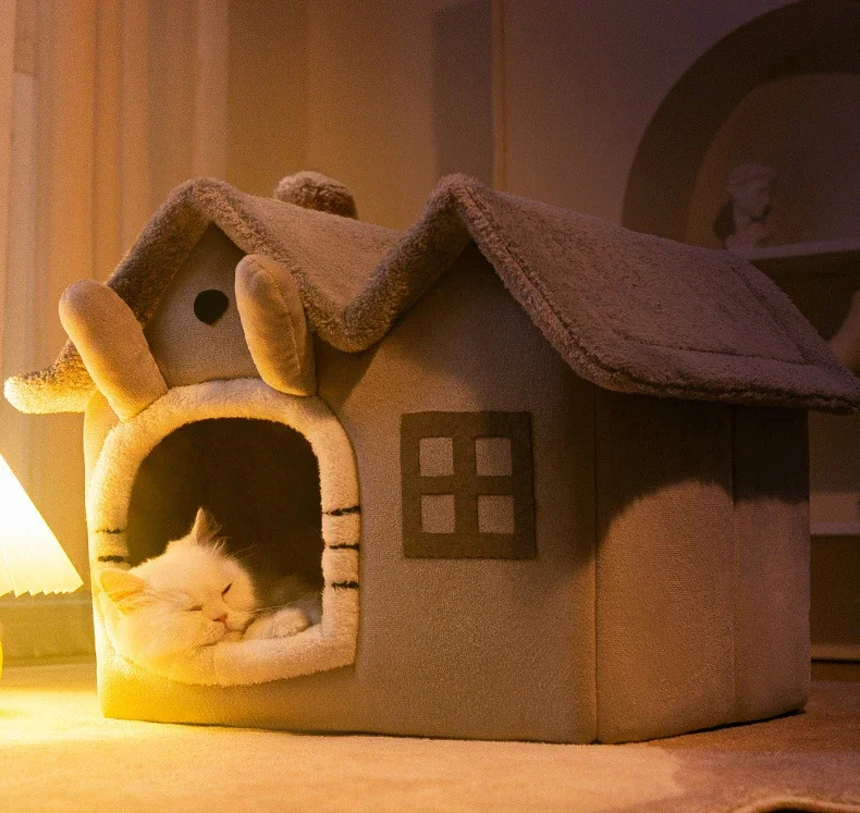 New Generation Pet House – Double-Roofed Animal-Shaped House for Cats and Small Dogs, Comfortable Sleeping Bed, Pet Nest, Accessories Included.
