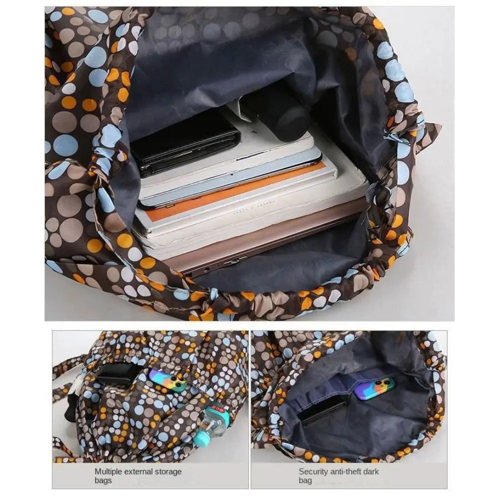 This foldable drawstring backpack is waterproof and has a super-large capacity (20β35 litres).