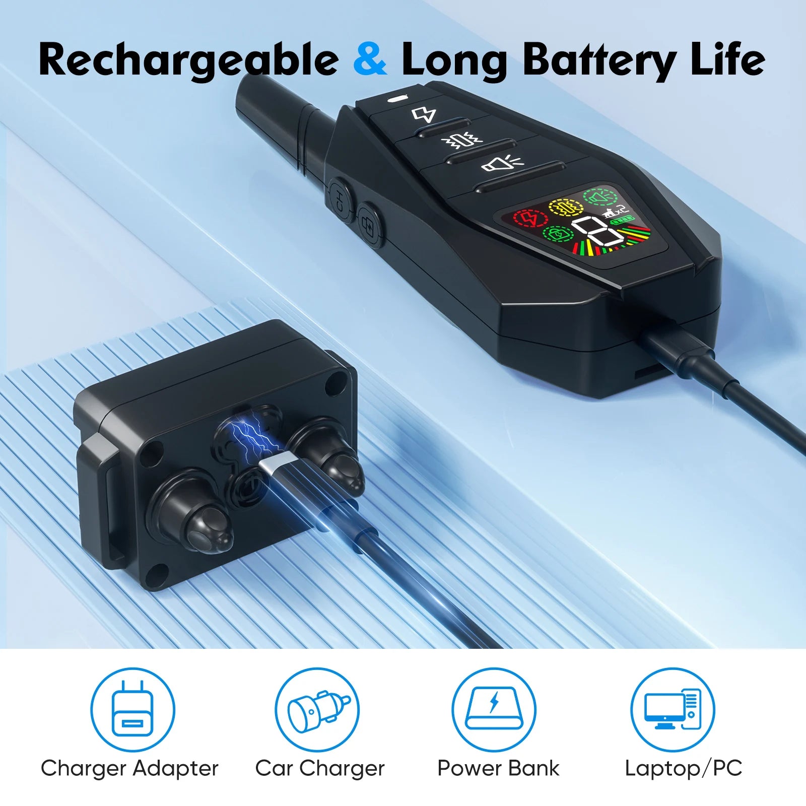 - Educa il tuo cane in totale libertà e sicurezza con il nostro collare da addestramento professionale. Progettato per resistere a ogni avventura, questo kit offre un controllo preciso fino a 1000 metri di distanza, ideale per parchi, boschi o sessioni all'aperto.