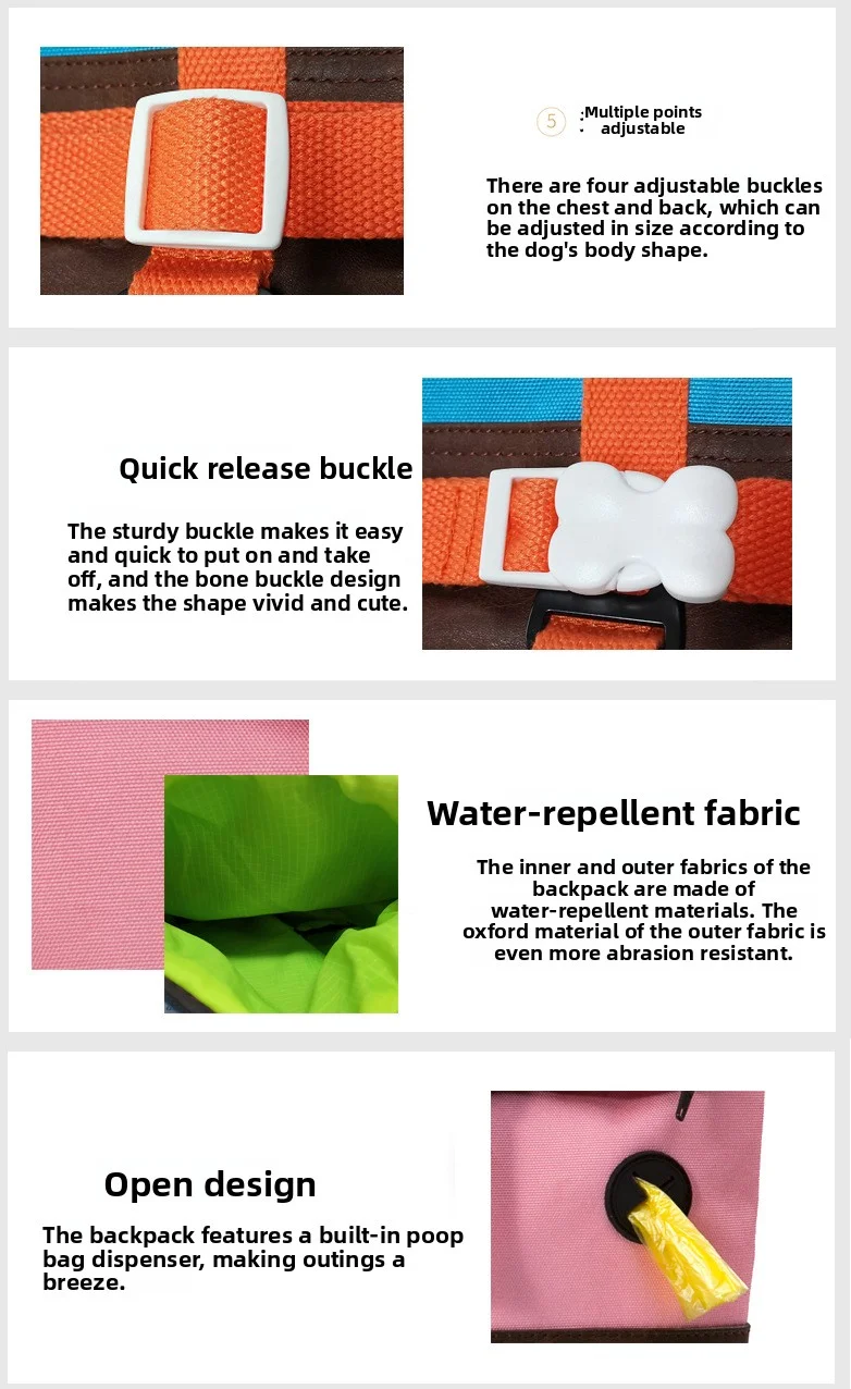 - Design 2-in-1: Non è solo uno zaino, ma una pettorina completa dotata di un robusto punto di aggancio in lega di zinco per il guinzaglio, situato sulla parte posteriore per garantire un controllo ottimale durante il movimento.
